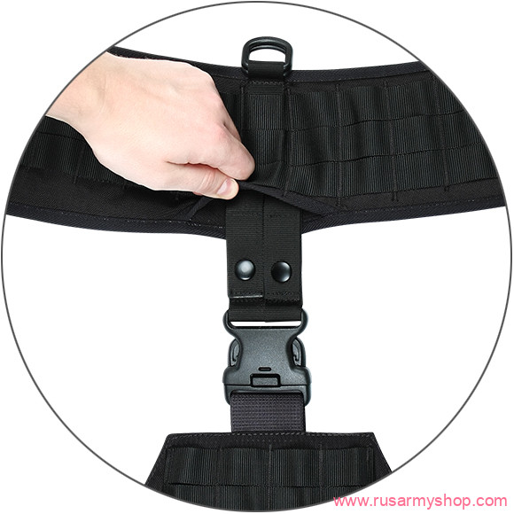 The modular unloading belt of enhanced comfort, along the entire length, allows to mount the PALS and ALICE pouches of the system. Free saturation with pouches, depending on the task